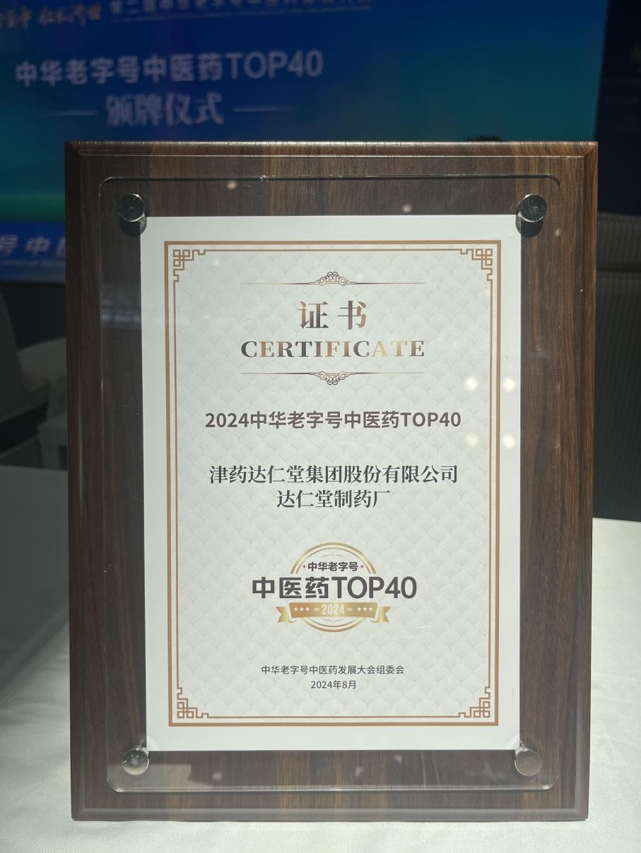 会议期间,“中华老字号中医药影响力榜TOP40”重磅发布,津药达仁堂集团凭借其在历史文化传承的深厚底蕴、品牌建设的卓越成就、积极履行社会责任的担当精神、市场表现的强劲实力以及消费者口碑的高度认可,荣耀登榜。这不仅是对我们综合实力的高度肯定,更是对我们在中医药领域持续贡献与创新发展的最佳证明。